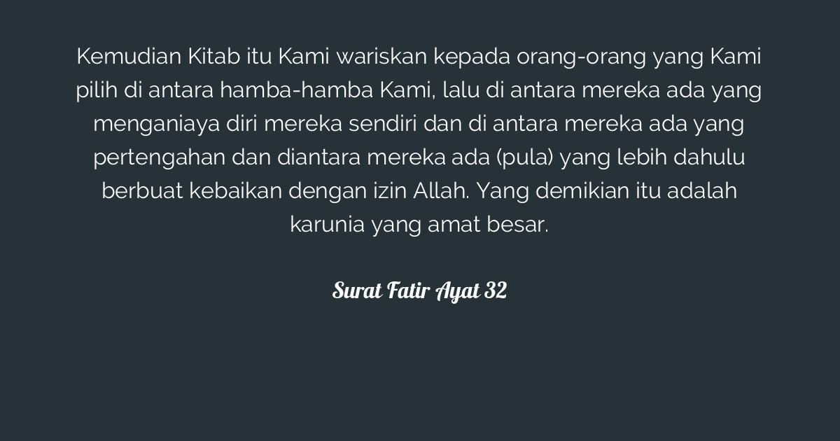 Ia mengerjakan yang wajib dan menambah dengan yang sunat, serta meninggalkan yang haram dan yang makruh. Begitu mudah ternyata berbuat kebaikan itu. Kemudian allah menjelaskan bahwa berpegangnya manusia dengan al qur'an ini terbagi beberapa golongan. Tulislah surat fatir ayat 32 dengan harakat yang benar! Hari ini kami mencoba akan bahas analisis hukum tajwid surat fatir ayat 32 lengkap dengan penjelasannya.